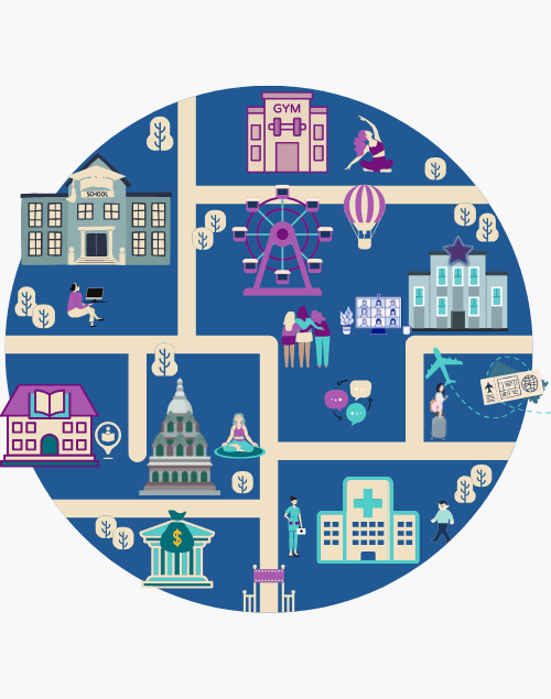 Diseñamos una ciudad digital holística con sectores que acompañan tu crecimiento integral, como terapeuta y como mujer de luz